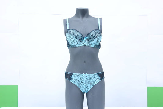 10043 - Ladies' Lace Embellished Push-Up Bra and Panty Combo with Chic Underwire & Print
