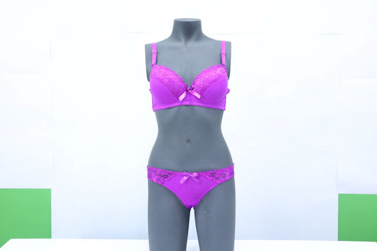 10046 - Women's Normal Underwire Lace Bra with Matching Panty - Comfortable Push-up Set