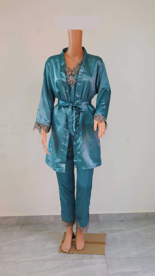 10065 - Luxurious Silk 5-Piece Sleepwear Collection for Women: Pajamas, Robe, Nightgown, Cami, Shorts