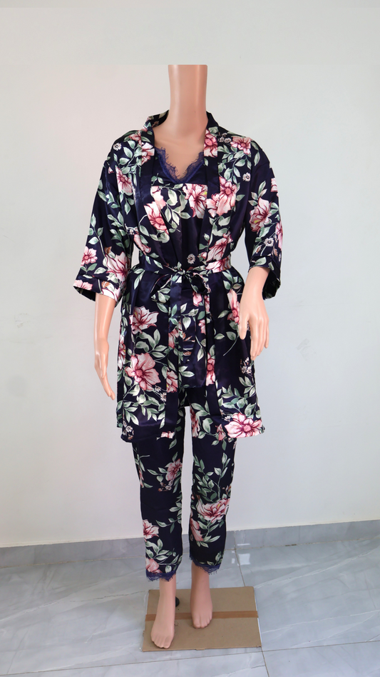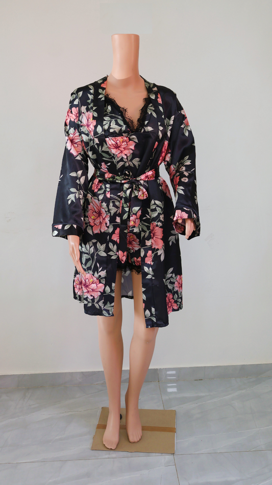 10061 - Ladies' Trio Floral-Styled Cami Robe with Shorts Pajama Ensemble